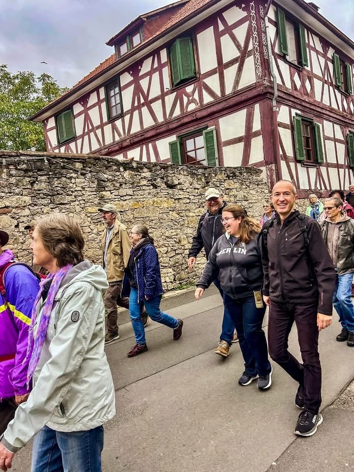 Start war an der Bulauhalle, wo es nach lieben Begrüßungsworten von Projektleitung, Vorständen und unserem Bürgermeister in Richtung Sängerwiese losging. Über den Alten Ortskern, den Storchenweg und den Bahnhof kamen wir wieder am Neubaugebiet an. Hier und da wurden Anekdoten zum Besten gegeben, Wissenswertes aus vergangenen und jetzigen Zeiten erzählt und die Tafeln bestaunt, die viele Informationen enthalten.